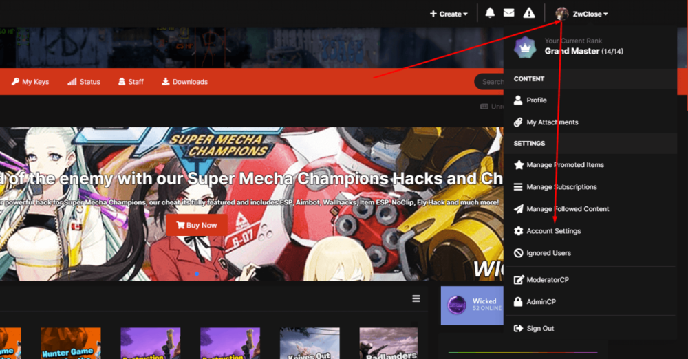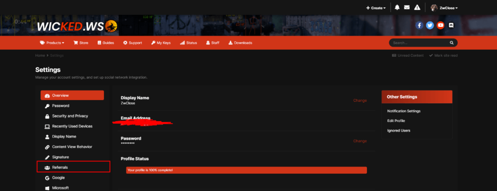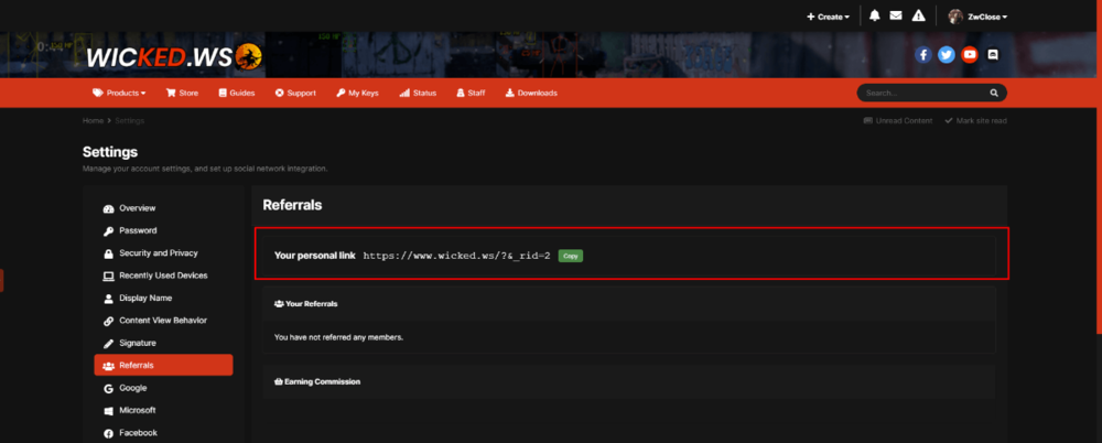 Hi we present you our new referral system, improved than the older and easier, also you can get paid or spend the credit on the cheats you want. You may ask how it works? Its easy every member have a referral link to share to their friends or known people, you need to copy that link and share it to your friend and your friend need to complete the registration through that link and make their first purchase, if your friend dones't register with that link you won't earn nothing so make sure he uses your link. Now you know you to get referrals and you probably ask how you will be credited right? Well its easy too, this system its fully automatic once your friend register using your link and make their first purchase you automatically and instantly will be credited with your % of the total price of your friend purchase. Now the final question, how you can redeem that credits? Every earning you get its accumulated on your Account Credit, and you can redeem it on our store cheats or get paid via PayPal. Is there a minimun requeriment to withdraw the earnings? Yes, 5$ wich its our minimun cheat price, once you earn 5$ on the Account Credit page you will be able to see a buttom that allow you to request a withdraw. 1 -> Click on your profile name and look for "Account Settings". 2 -> Once you are on inside Account Settings take a look for "Referrals" Tab. 3 -> Here you will be able to see your referral link, the persons that you have referred and your earnings. -