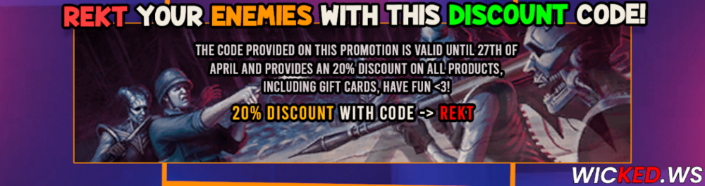 Lets celebrate this Black Friday for first time on Wicked with a great 20% discount until 26/11/2021. DISCOUNT CODE -> BLACKFRIDAY2021 How i can redeem the coupon to get the discount? 1 -> Select the product you want and add it to cart. 2 -> A window will popup press review & checkout. 3 -> Press checkout. 4 -> Take a look for a box that says "DO YOU HAVE A COUPON CODE?" once you have found it just click on it and enter the discount code and click "Apply Coupon". 5 -> Enjoy your discount! Enjoy